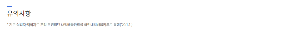 몇 년 전까지만 해도 재직자와 실업자를 나누며 신청절차도 굉장히 복잡한 편이었습니다. 저도 몇 년 전에는 재직자 카드를 만들어 이용했었는데요. 2020년부터 굉장한 변화가 생겨 누구나 쉽게 사용할 수 있게 되었습니다.