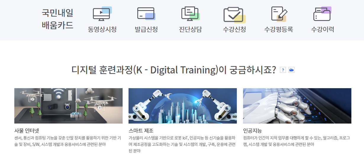 혹시라도 내가 관심 있는 과목이 내일배움카드로 지원되는지 확인하기 위해서는 아래를 확인해보시면 좋을 것 같습니다.