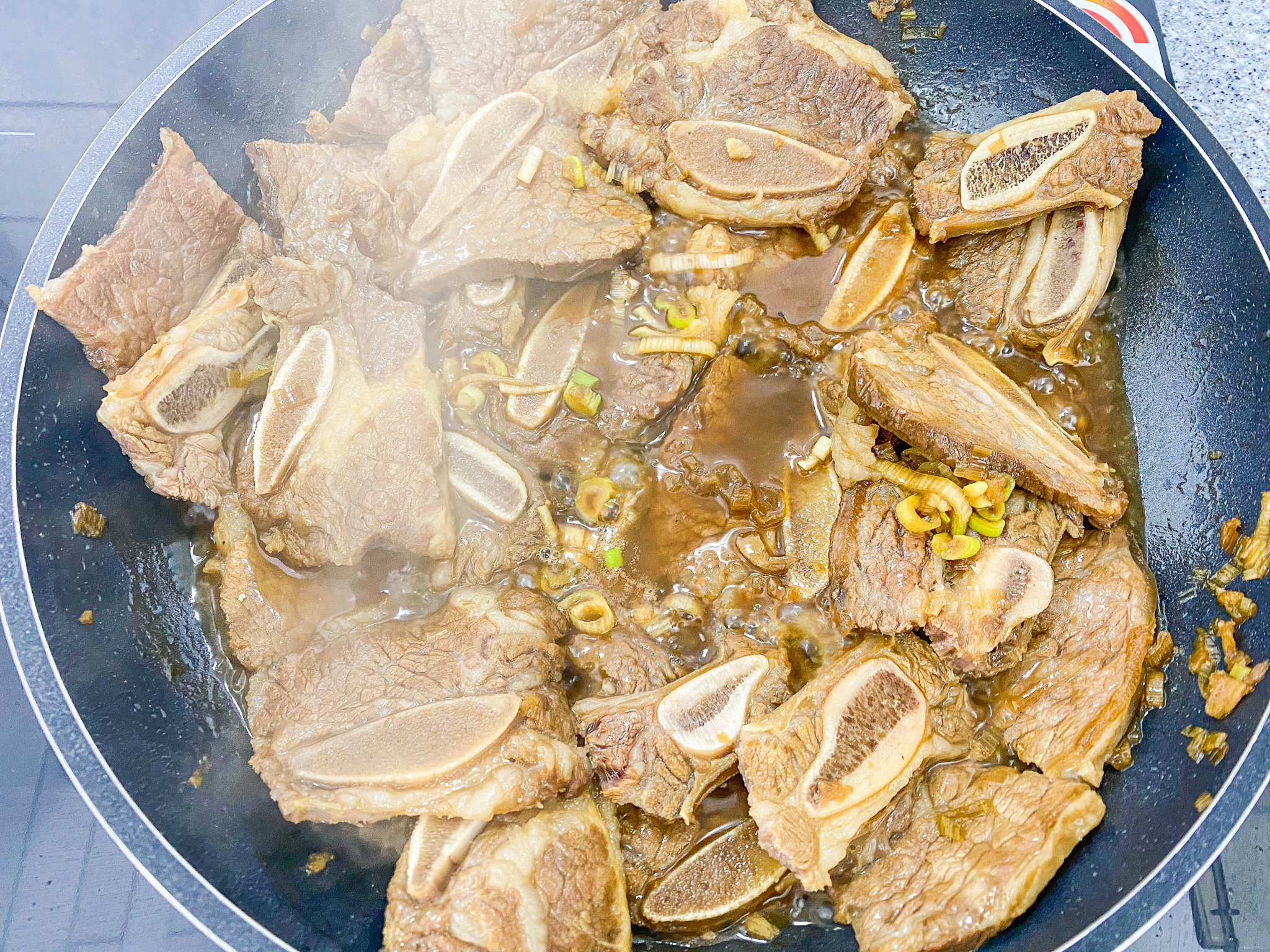 여기서 맛의 차이는 며칠 숙성하냐에 따라 졸일 때 양념과 물을 넣는 양이 달라지는데요. 오래 숙성하셨다면 양념을 덜어서 넣기보다는 물을 좀 더 많이 추가하셔서 익혀주셔야 많이 짜지 않습니다. 다 익은 고기를 잘라서 조금 드셔 보시면 감을 잡을 수 있을 거예요.